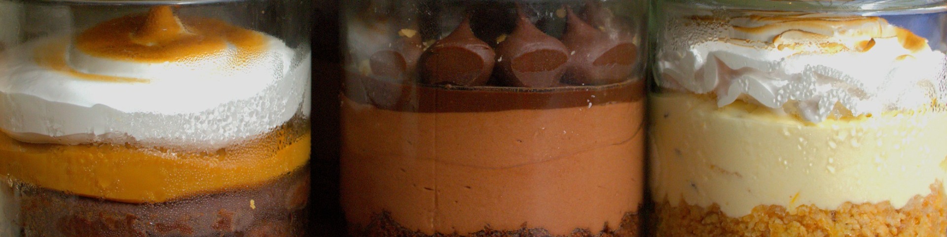 Postre con base de brownie, capa de manjar, ganache de chocolate y merengue